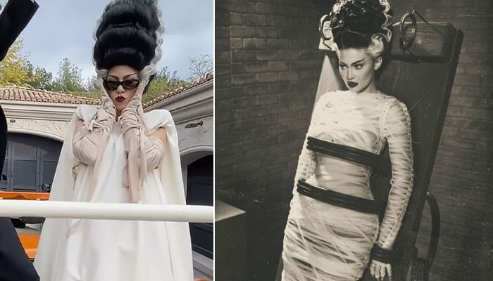 The Kardashians stars look coincidentally matched as both of them donned the iconic Bride of Frankenstein look for the spooky season.