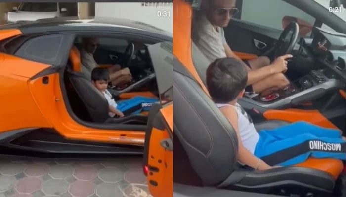 The cricketer shared a video on his official Instagram account where he could be seen sitting in the driver's seat of an orange sports car with Izhaan in the passenger's seat beside him.