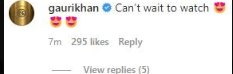 As soon as Aryan dropped the news, mother Gauri Khan immediately rushed towards the comment section and showed her excitement. She wrote: “Can’t wait to watch.”
