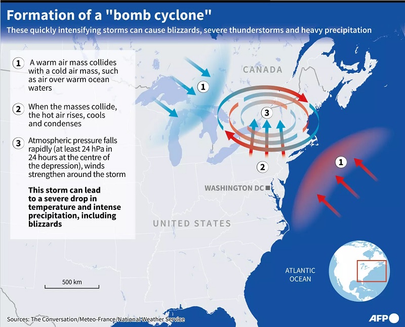 The "bomb cyclone" winter storm had already forced the cancellation of over 3,300 US flights
