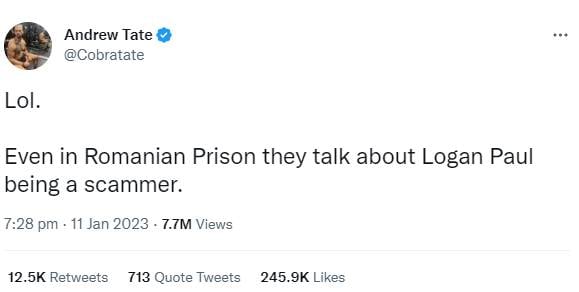 However, this did not go well with Andrew and therefore, he hit back at Paul with a follow-up tweet, saying, “Lol. Even in Romanian Prison, they talk about Logan Paul being a scammer.”
