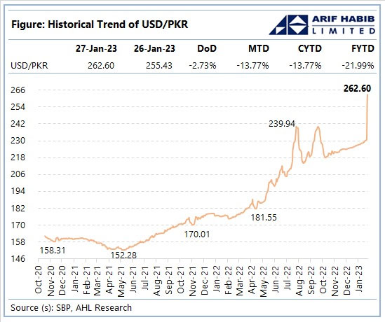 Rupee closes at Rs262.60 compared to Thursday's close of Rs255.43 in interbank market