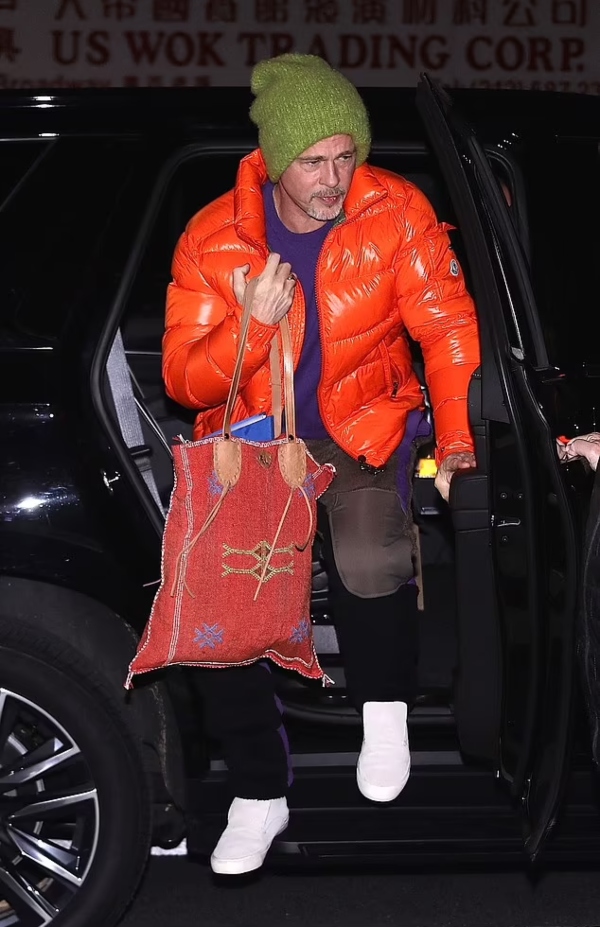 Pitt undoubtedly left his fans stunned with his latest fashion statement. The Academy award-winning star paired his reflective and bright jacket with a purple shirt and brown pants.