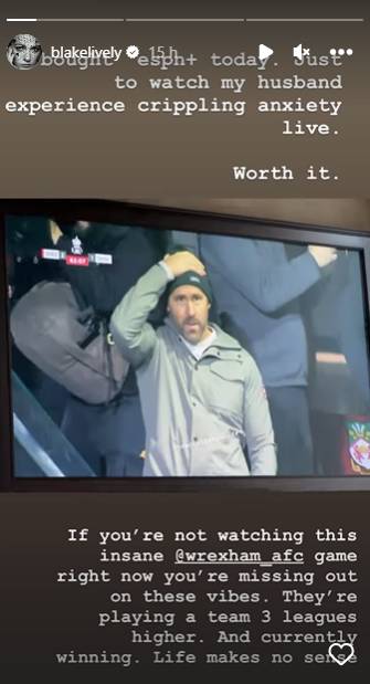 Taking to Instagram Story, The Age of Adaline star posted a screenshot of Ryan caught on a TV camera, looking anxious while watching his football club playing against Sheffield United at the Racecourse Ground stadium in Wales.