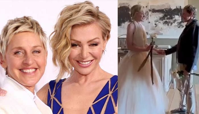 Ellen, 65, shared a snippet of the video on her Instagram and captioned it, "Portia surprised me at her birthday party by renewing our vows, Thank you @KrisJenner for officiating and @BrandiCarlile for performing, and Portia for being the greatest gift to me, even on your birthday."