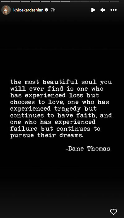 "Work on yourself & vibe alone for a while. Every season don't need company,” the Good American co-founder shared a quote.