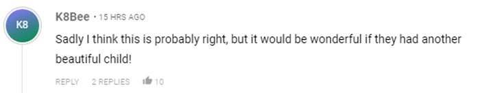 One fan said, “Sadly I think this is probably right, but it would be wonderful if they had another beautiful child!”