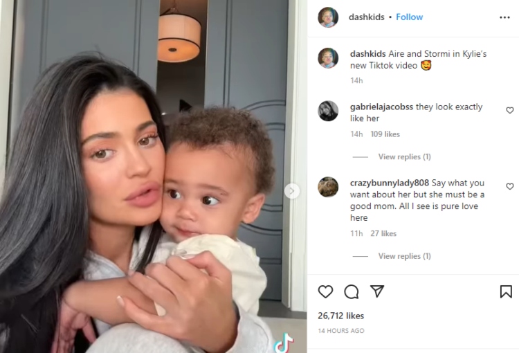 Kylie Jenner promotes new cosmetics products with son Aire, daughter Stormy