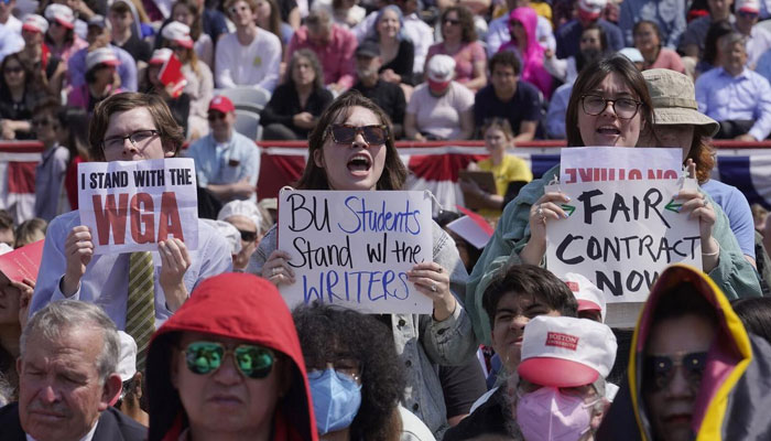 Warner Bros. Discovery chief David Zaslav's backed writers' struggle after his graduation speech at Boston University was marred with strong protest as WGA strikers chanted, "pay your writers."