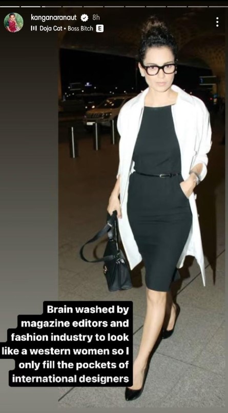 Kangana Ranuat concluded the series of stories by writing: "Bye bye airport looks we have gone past that phase. Now it’s time even if I buy one piece of clothing, I ask myself how many Indians benefit from this!”