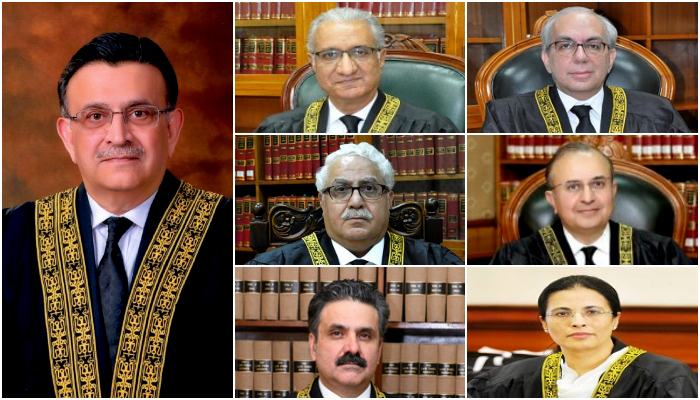 A new seven-member Supreme Court (SC) bench comprising CJP Bandial, Justice Ijazul Ahsan, Justice Mansoor Ali Shah, Justice Muneeb Akhtar, Justice Yahya Afridi, Justice Ayesha Malik, and Justice Mazahir Ali Naqvi, heard the petitions challenging the trial of civilians in military courts.