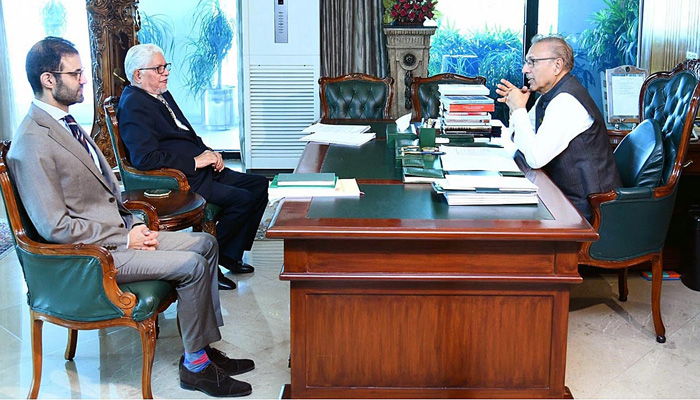ISLAMABAD: President Dr Arif Alvi Wednesday met the caretaker Law and Justice Minister Ahmad Irfan Aslam to discuss the matter pertaining to the election date, sources told Geo News.