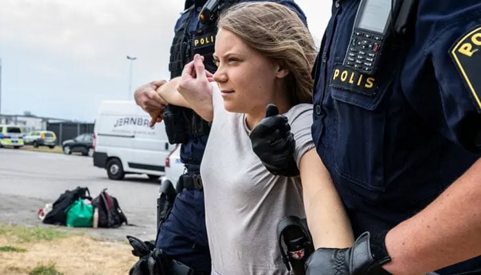 Police forcibly removed the 20-year-old campaigner from a climate rally in the Swedish port city on 24 July.