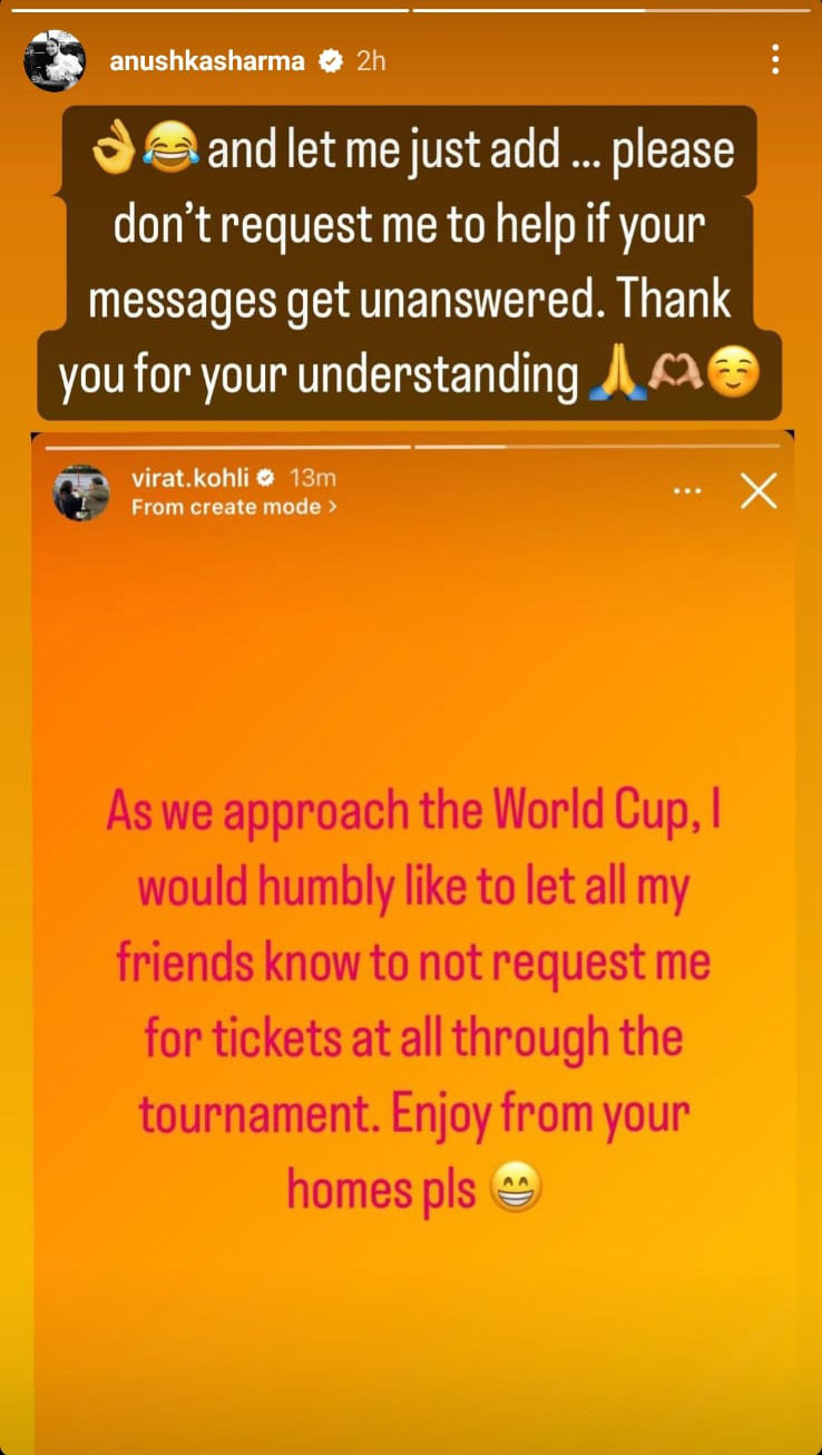 Anushka Sharma humbly requested her friends to avoid asking her for the tickets ahead of the ICC Men’s Cricket World Cup, which is set to be held in India.