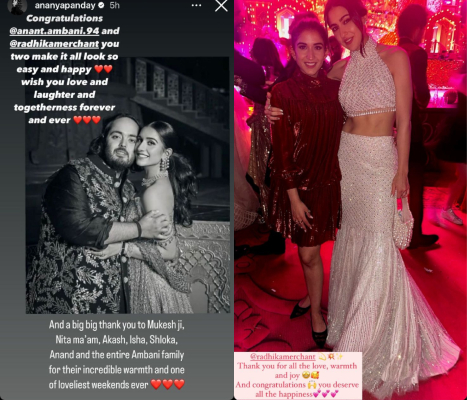 Ananya took to her Instagram story and shared an adorable photo of Anant and Radhika alongside a sweet note.