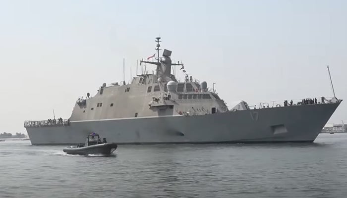 KARACHI: US Navy Ship USS INDIANAPOLIS, Freedom Class Littoral Combat Ship (LCS) on Thursday conducted a sea drill with the Pakistan Navy after its arrival at Karachi Port.
