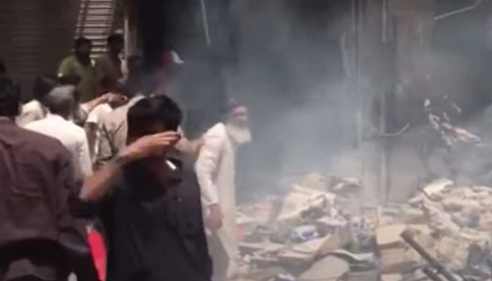 Rescue teams have reached site of the explosion located at the generator market in the New Challi area of Karachi