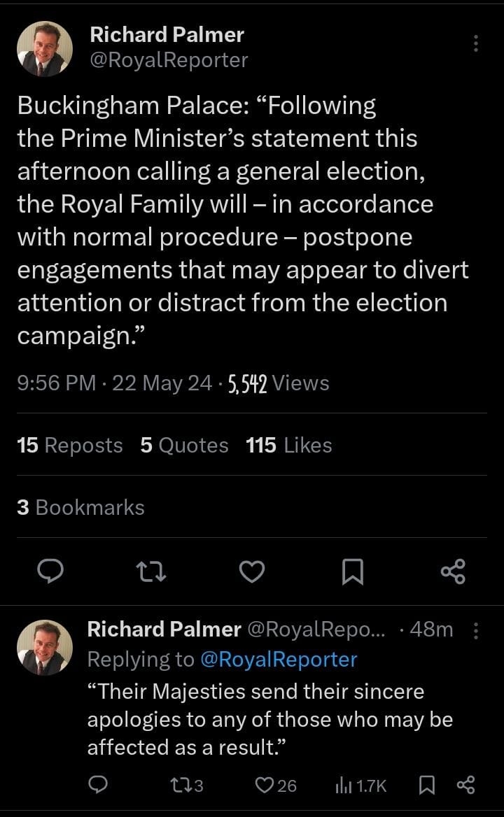 Buckingham Palace makes major announcement in light of of General Election: 'apologies'