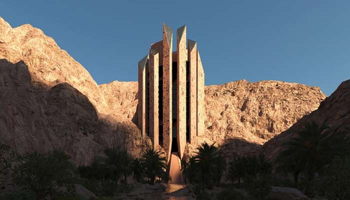 A staggering hotel by Chris van Duijn, a mirrored hotel by Shaun Killa, and a vertical rock hotel by Mario Cucinella are part of this project under the vision of Crown Prince Mohammed Bin Salman.