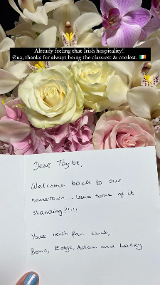 “Already feeling that Irish hospitality,” Swift wrote on the stories of her Instagram account with a photo of the flowers she got as a present from the band. “U2, thanks for always being the classiest & coolest.”