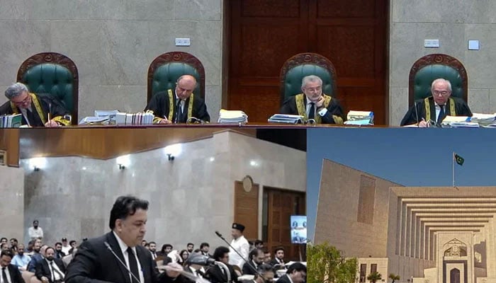 The full bench also comprises Justice Syed Mansoor Ali Shah, Justice Muneeb Akhtar, Justice Yahya Afridi, Justice Amin-ud-Din Khan, Justice Jamal Khan Mandokhail, Justice Muhammad Ali Mazhar, Justice Athar Minallah, Justice Syed Hassan Azhar Rizvi, Justice Ayesha Malik, Justice Shahid Waheed, Justice Irfan Saadat Khan and Justice Naeem Akhtar Afghan.