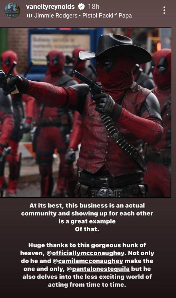 On August 4, Ryan posted a shot of Matthew holding up a pistol while dressed as ‘Cowboypool’ in the Deadpool & Wolverine on Instagram Story.