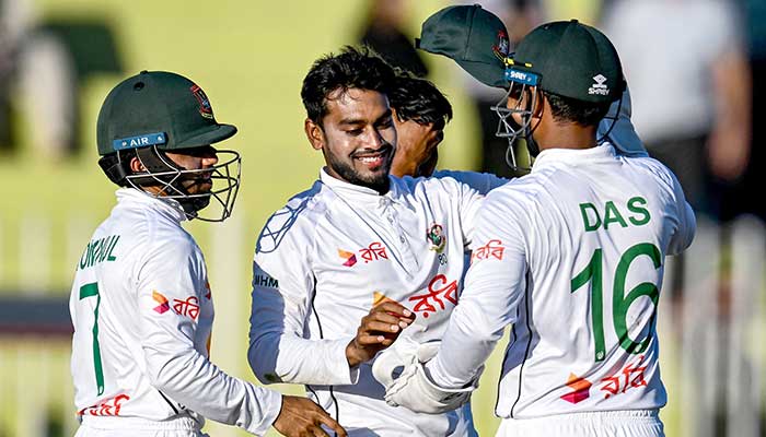 RAWALPINDI: Spinner Mehidy Hasan Miraz bagged a five-wicket haul to help Bangladesh restrict Pakistan on 274 on day two of the second Test at Rawalpindi Cricket Stadium on Saturday.