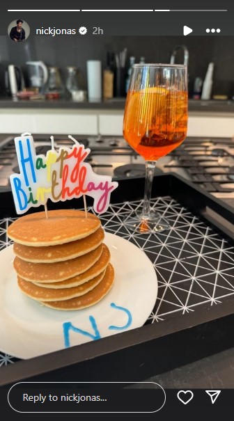Jonas took to his Instagram Stories to share details with his followers in a round-up of snaps, which included his birthday cake, a glass of drink, and his initials ‘NJ’.