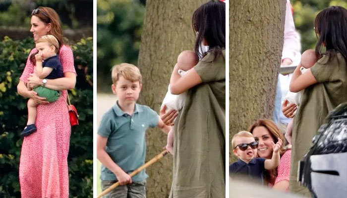 In a rare photo, the Waleses children were seen watching over their two-month-old cousin, Archie, as Harry was participating in a polo match in Wokingham.3