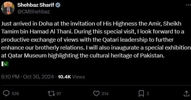 Taking to X, formerly known as Twitter, the premier said that he just arrived in Doha at the invitation of the Qatar's emir.