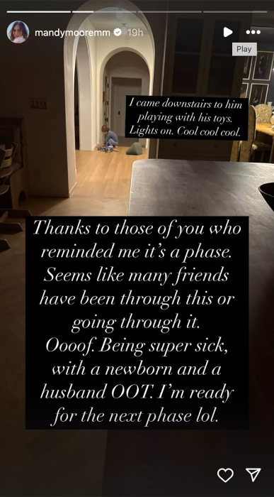Mandy Moore, who is a mother to two toddlers, shared her real routine as a mom with fans.