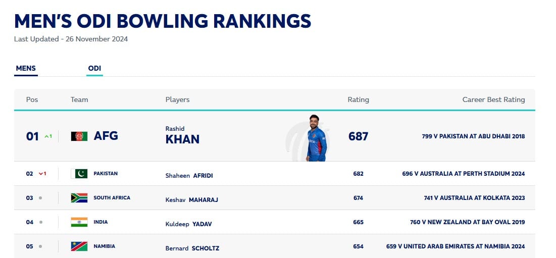 Shaheen Shah Afridi loses top spot in ICC ODI bowling to Afghanistan's Rashid Khan