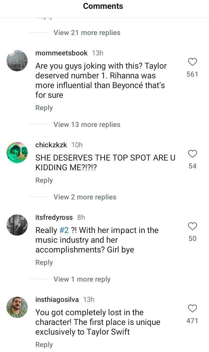 After the outlet posted a video on Instagram, the Swifties expressed their shock as Beyonce earned first position on the list and Taylor was the runner-up.