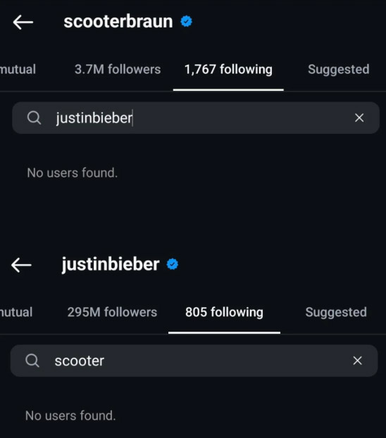 The eagle-eyed Beliebers noted that Justin, 30, had unfollowed and allegedly blocked Braun, Taylor Swift’s longtime nemesis, from his Instagram.