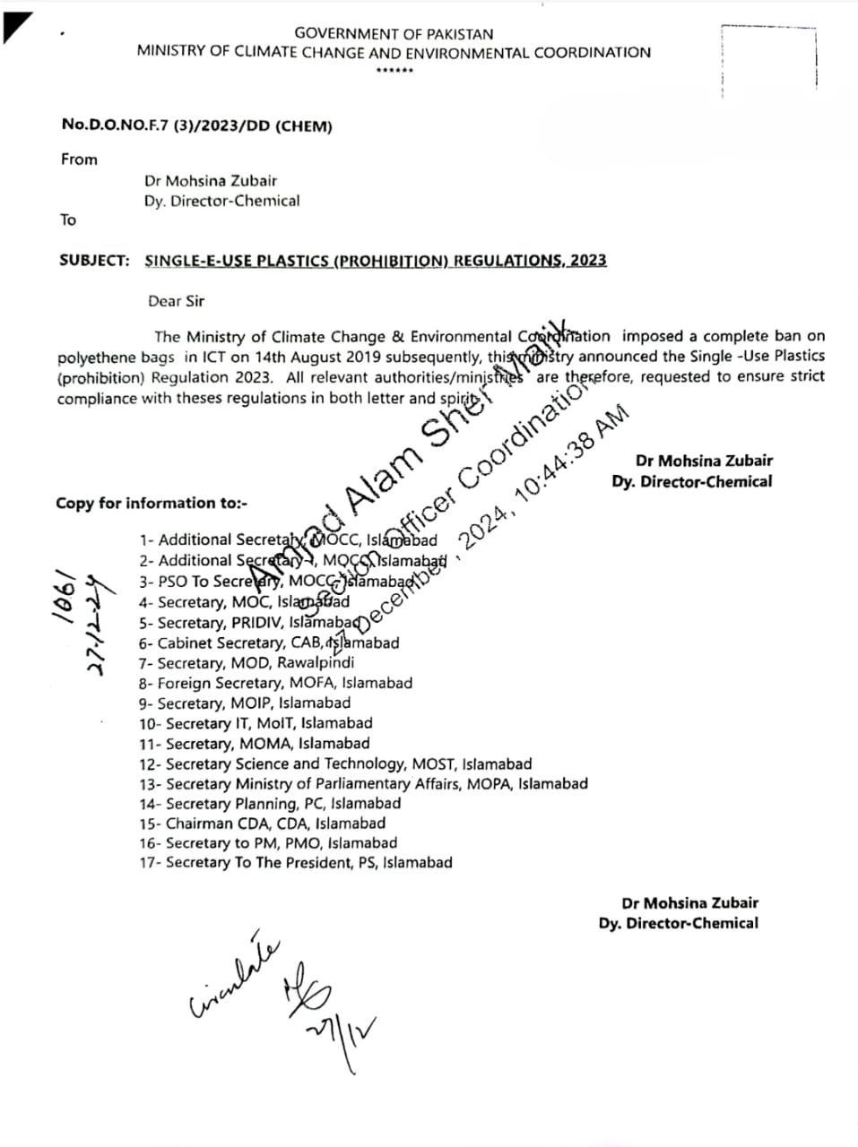 According to the letter, the ministry imposed a complete ban on polythene bags in 2019 and subsequently announced the Single-Use Plastic (prohibition) Regulation 2023.