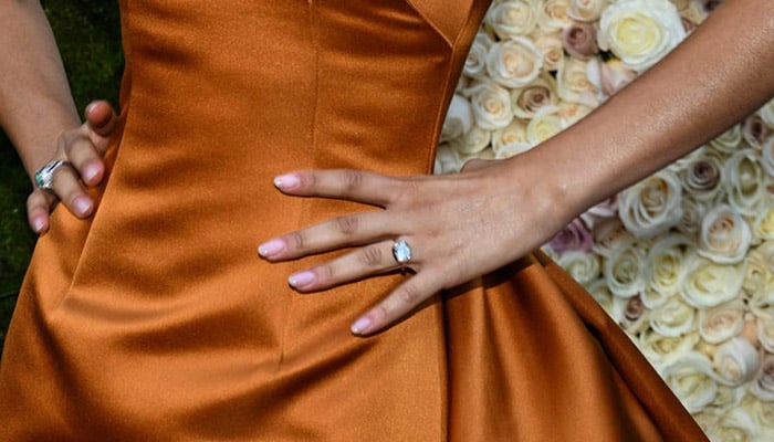 Looking stunning in a burnt-orange satin Louis Vuitton gown, the Euphoria star stole the limelight at the event with a massive solitaire diamond ring adorning left hand ring finger creating speculations that her Spiderman beau popped the question, and she said yes.