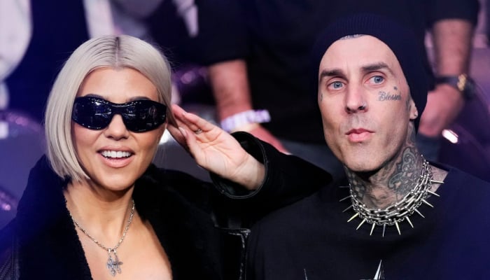 Kourtney Kardashian, Travis Barker get cosy at Blink-182 Super Bowl party