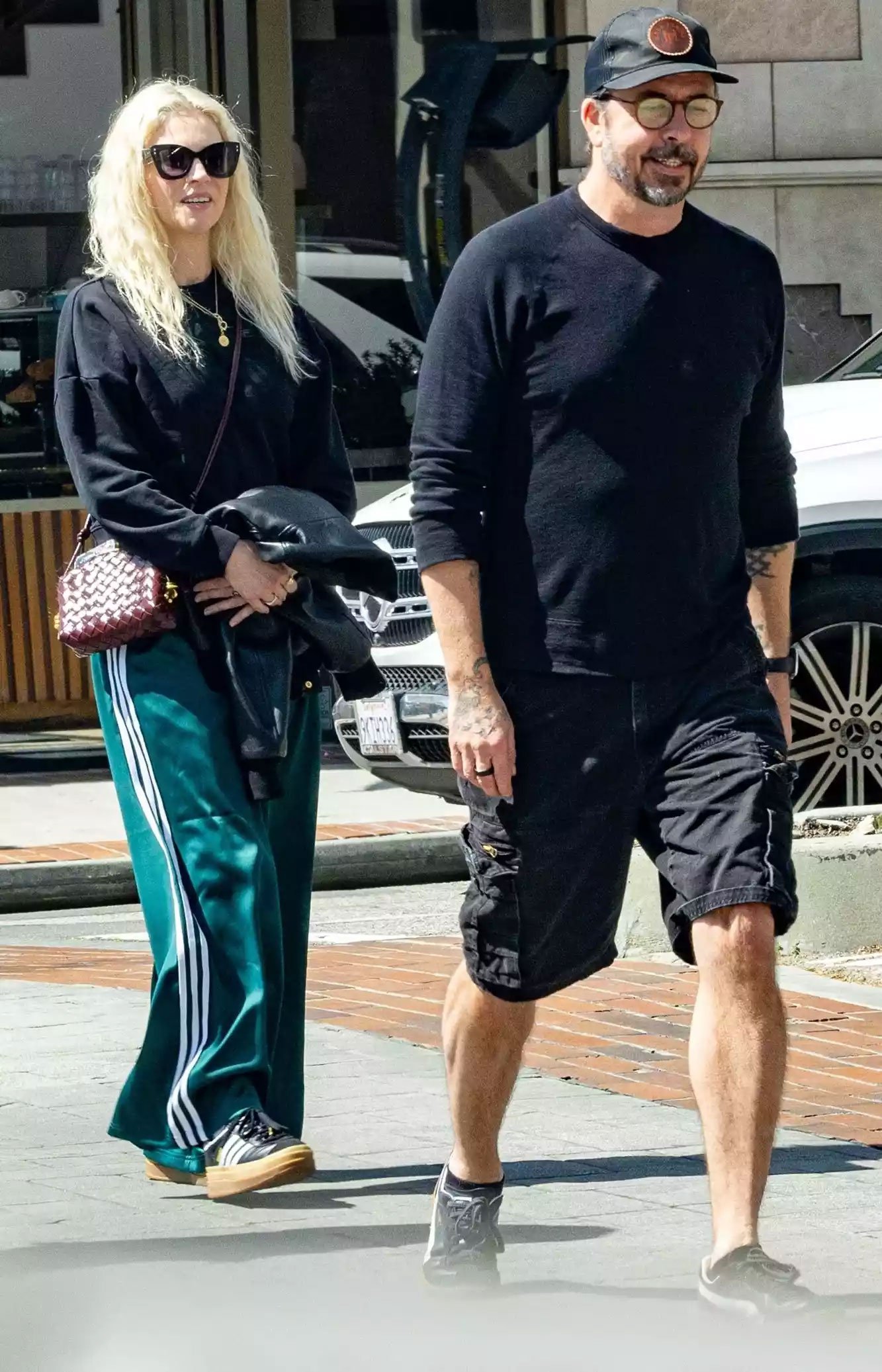 They opted for a relaxed look for the casual outing, with the Nirvana alum wearing a full-sleeved black shirt and matching cargo shorts.