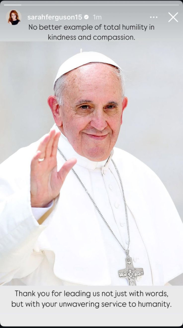 Sarah Ferguson released an emotional statement to honour Pope Francis, who passed away aged 88.