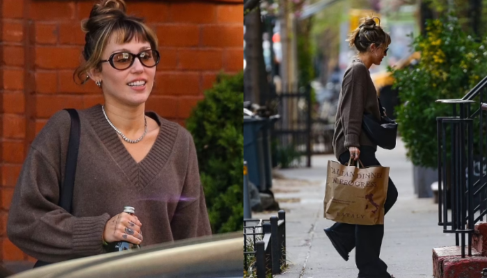 Earlier that day, Miley was seen heading back from what seemed like a grocery trip, dressed casually in the same brown sweater and loose jeans.