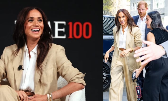 Meghan Markle radiates positivity as she returned to New York City for the TIME100 Summit on April 23, accompanied by her supporting husband Prince Harry.