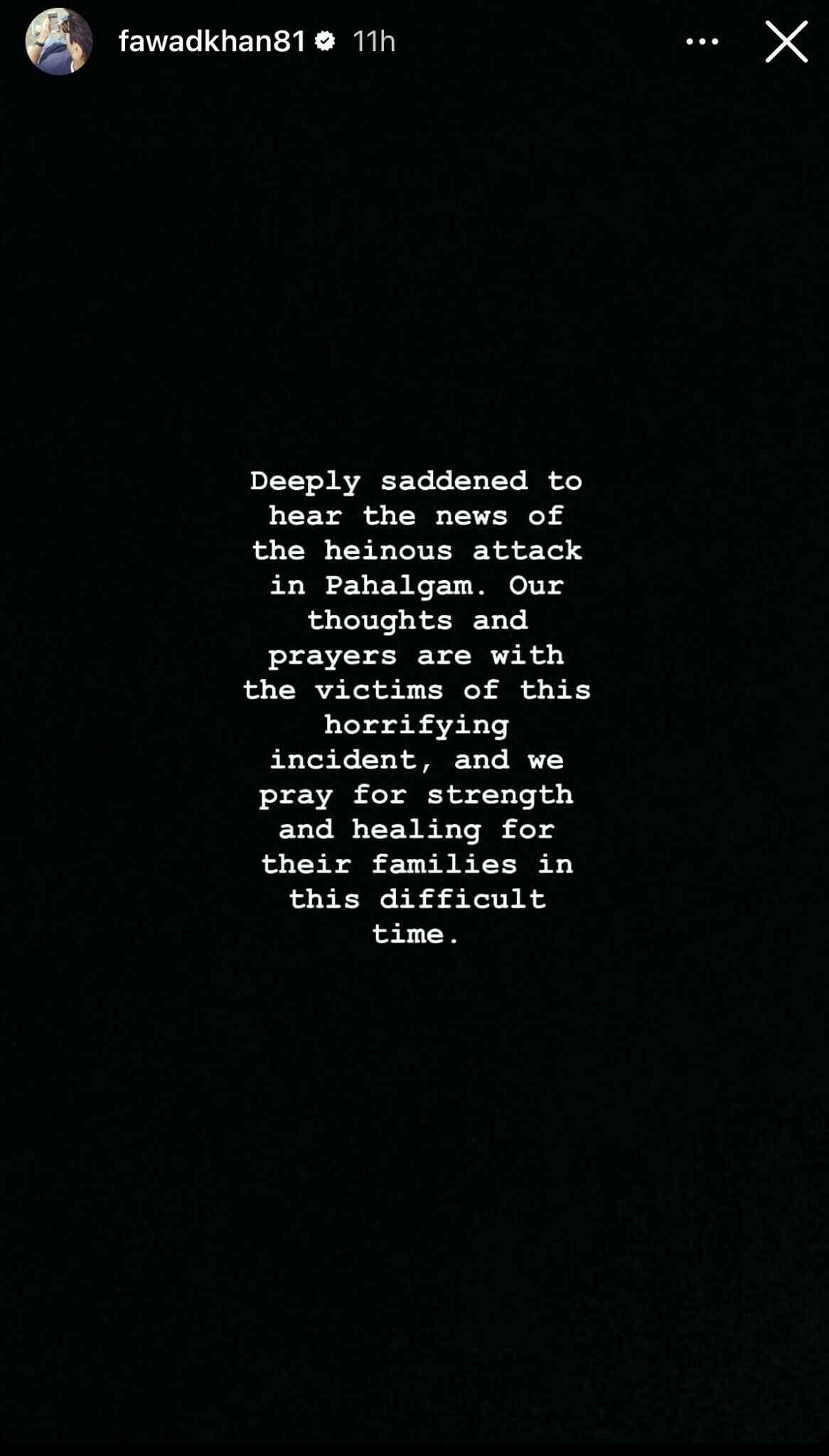 In an Instagram story posted Wednesday night, he wrote: “Deeply saddened to hear the news of the heinous attack in Pahalgam. Our thoughts and prayers are with the victims of this horrifying incident, and we pray for strength and healing for their families in this difficult time.”