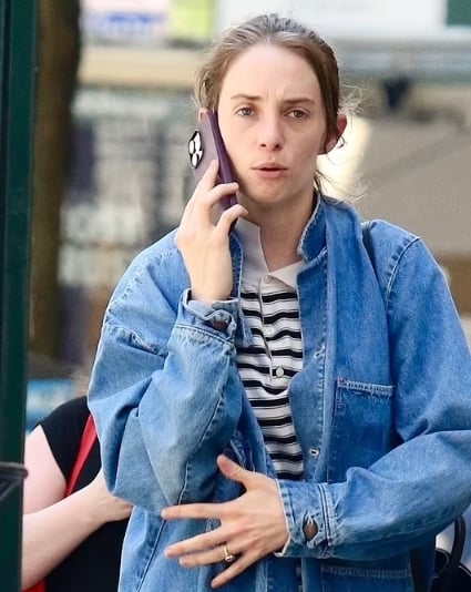 In the viral image, the American actress wore a black-and-white horizontal-striped polo top under a light blue denim jacket, paired with matching jeans.