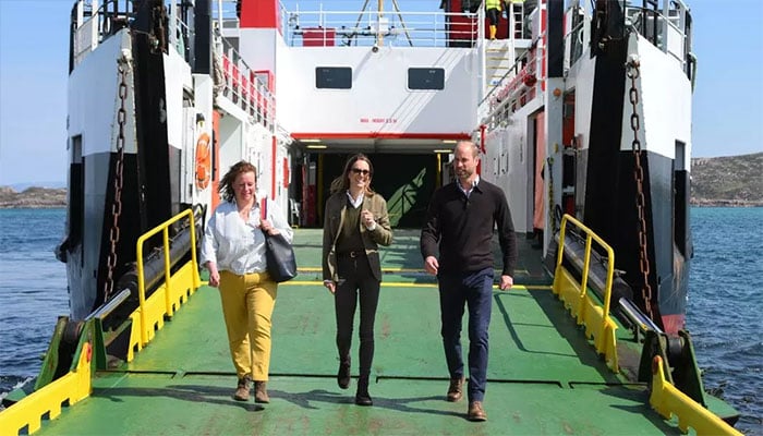 William and Kate had just boarded a public CalMac ferry from the Isle of Mull, where they marked their wedding anniversary by engaging in community-focused royal duties.