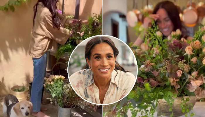 In the Instagram post, Meghan shared a nostalgic video featuring her late rescue beagle, Guy, who passed away earlier this year. In the clip, the little canine follows Meghan as she gathers flowers and arranges them at her workbench — cutting and snipping their stems while bunching them together.