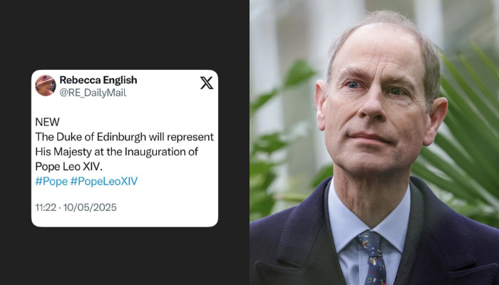 As per Daily Mail's royal editor, Rebecca English, Prince Edward will "represent His Majesty at the Inauguration of Pope Leo XIV."