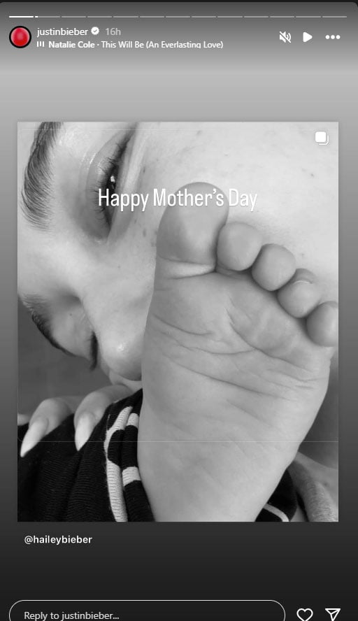Later in the day Justin shared another post on the social media app, celebrating his wife as he wrote, “Best mommy day gurlie.”