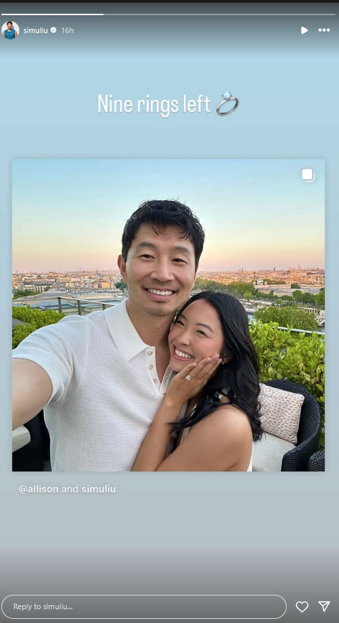 Additionally, the Shang-Chi and the Legend of the Ten Rings star reposted his fiancee’s post on his stories and playfully wrote, "Nine rings left to go!"