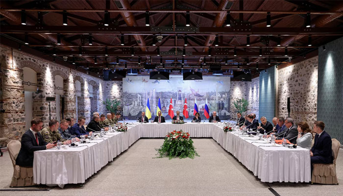 Fidan sat at the head of a table in front of Turkish, Russian and Ukrainian flags at Istanbul's Dolmabahce Palace for the talks — with Russian and Ukrainian delegations facing each other, footage from the room showed.