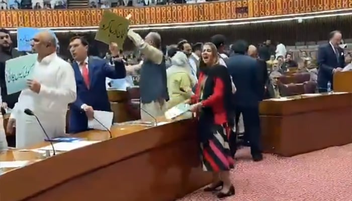 The Pakistan Tehreek-e-Insaf (PTI) lodged a strong protest in the National Assembly during the budget session on Tuesday and rejected it by terming it an "IMF-influenced" budget.